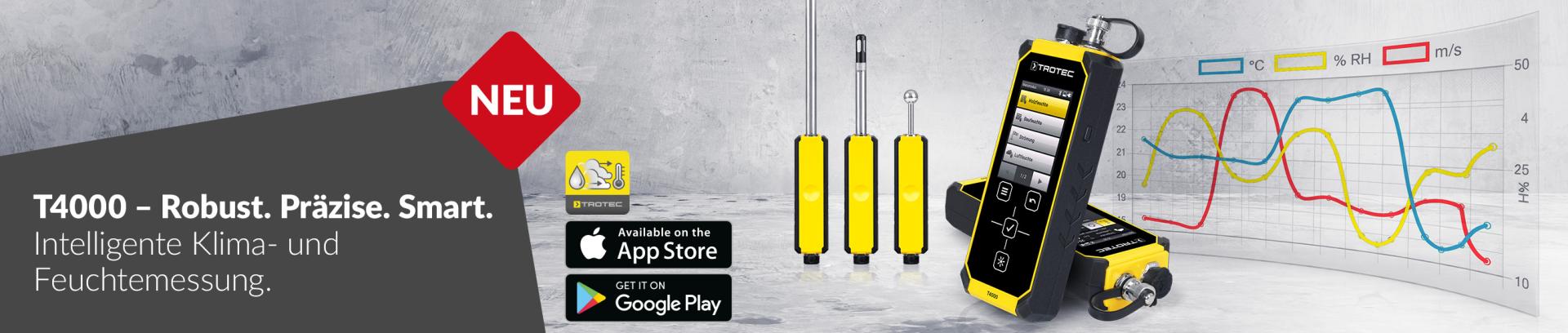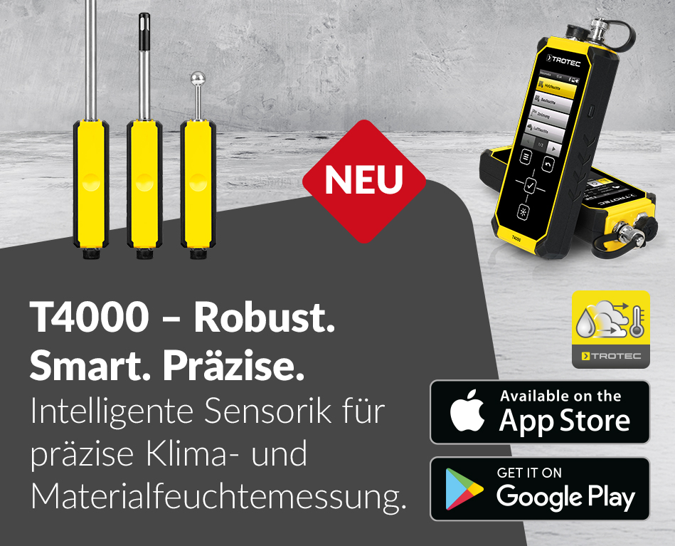 Das T4000 ist ein modulares Multifunktions-Messgerät für professionelle Anwendungen in Bereichen wie Wasserschadensanierung, Bauwerksdiagnostik, Leckageortung und Materialprüfung.