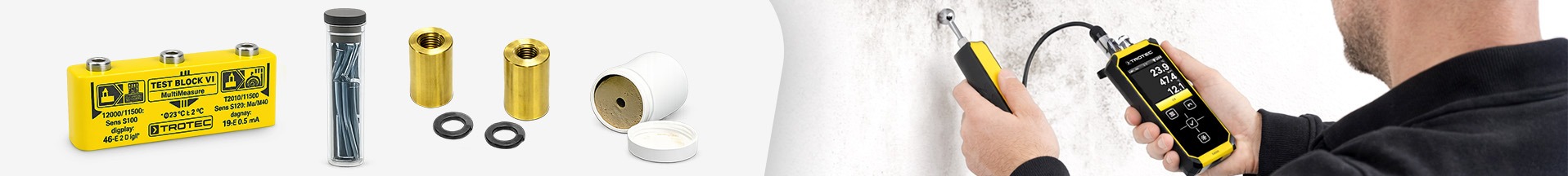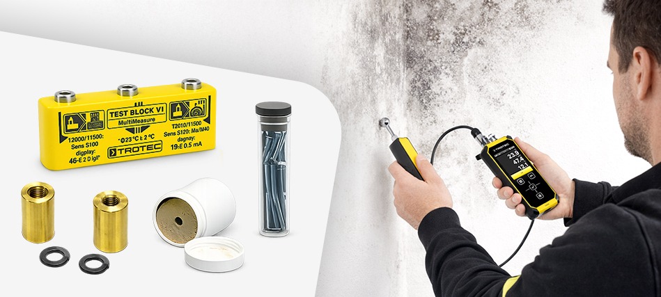 Mit kapazitiven Sensoren erfolgt eine zerstörungsfreie Oberflächenanalyse von Baustoffen. Durch hochwertige Widerstandselektroden werden quantitative Messungen in Holz und Baustoffen ermöglicht. Hierbei berücksichtigt das T4000 über 200 hinterlegte Holzarten inklusive Temperaturkompensation. Klimasensoren erfassen Temperatur, Luftfeuchte, Taupunkt, Absolutfeuchte, spezifische Feuchte. Durch ein beheizbares Sensorelement werden Messdrifts bei hoher Feuchte oder durch Ablagerungen reduziert. Optional ermöglichen spezielle Sensoren die H₂-Tracer-Gas-Detektion zur Leckageortung.